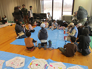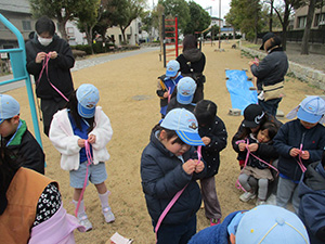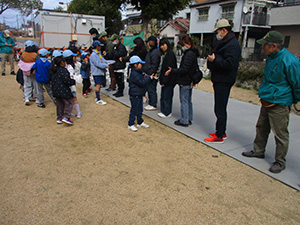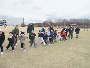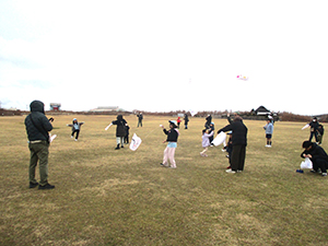 1・7・20団合同ミニビーバー祭りが尼崎中央緑地で開催されました。ところが今季一番の大寒波襲来で、六甲山は真っ白、時折猛吹雪になります。しかし、室内での凧制作中だけで、凧揚げ時にはやんで絶好の風が吹き、みんなの凧が天高く舞い上がりました。気温の低い中、7団地域からも3人が体験参加してくれ、一緒に凧制作、たこあげ、昼からの全体ゲームを楽しんでくれました。同じ幼稚園、学校も多く、今後参加入隊してくれたらいいなと思いました。現地直接集合という、「歩きのあまななビーバー」としては今季初めての試みでしたが、少し気弱になってきたのでしょうか?(K3)