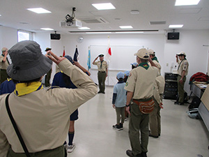 2026年度団入隊上進式が満開の桜のベイコム体育館研修室で行われました、ビーバー隊が新規4名、カブ隊へ上進4名がそれぞれやくそくをしました。また、ビーバー隊、カブ隊、ボーイ隊もそれぞれ隊長が交代し、あらたな門出となりました。2026年発進です。(K3)