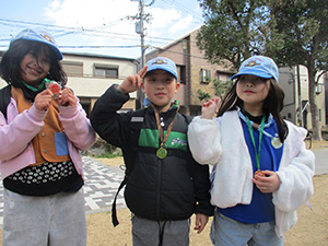 3月第1週隊集会は上進・進級・入隊試験集会。今年も15の試験にそれぞれが挑みます。ただ、大物公園が改修中と隊倉庫が撤去となり、準備が大変でトイレも遠く、狭い場所でこじんまりの集会でした。気温の低い中、みんな元気いっぱいで、ぶら下がりから始まり、ケンパー、大声出し、集中のテープカットやイライラ棒、間違い探しや家探しなど難関を次々突破、お昼ご飯を挟んでパパ・ママ声当て、おやつの副長自慢のたっぷりポテトを食べて、最終試験の全員じゃんけんを無事突破し、全員合格となりました。そして、記念の合格メダルを授与されました。体験入隊者も2名が新規登録となり、来年度もばっちり、次回オワカレ—で今年度行事はバイバイです。(K3)