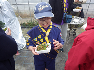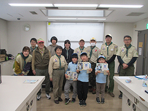 くまの1年間の活動しめくくりとして、ボーイ隊合同の舎営にご一緒しました。1日目は到着後すぐにハイキング。スカウトたちはアドベンチャーなルートもスイスイですが、指導者は結構こわごわ…寒い季節だけどやっぱり水にはワクワクしますね。何人かは足元が濡れていました。夜は鍋にランタンファイヤーで賑やかな時間が過ぎていきます。2日目はスカウトミュージアムを見学後、春至山荘を後にし、有馬温泉でのハイキングです。各班立てた計画に基づいて巡りましたが、うまくいったかな? とても賑やかで楽しかったので4月からのボーイ隊もこんな感じだといいな~と思います。(M34)