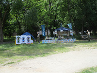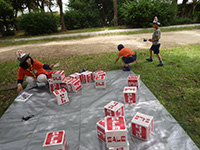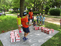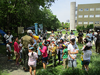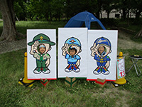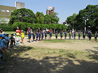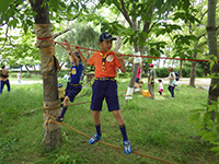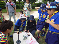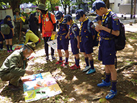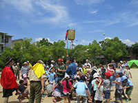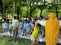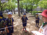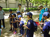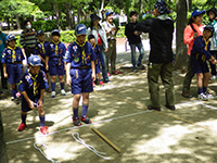 カラっとした暑さの中、塚口椀田公園で尼崎地区ビーバー祭りが開かれました。開会式時点でスカウト、一般参加が160名を超しているような状況で、用意した缶バッジが足らなくなり、リーダー、保護者分は急遽回収となりました。「尼ぴょっんを救え」のテーマで各隊が準備した9つのコーナーを回り、昼食後全体ゲームで締めくくりましたが、途中参加も多く、全参加者は300人近い大盛況だったのではないでしょうか。これが人数増加につながればいいのですが。(K3)