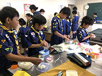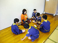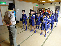 今日のカブ隊の活動は小田地区会館で、夏休み舎営のスタンツの準備、ソングの練習、室内でのミニゲーム。そして自分たちで作ったおにぎりを持って午後からハイクの予定でしたが、午後からも雨の予報だったのでハイクは中止し、会館で自分で作ったおにぎりを食べて、午前中の活動で解散しました。(Massa)