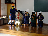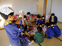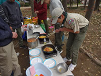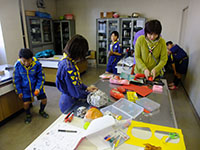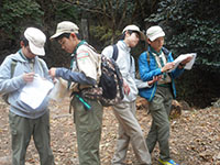 ぐっと冷え込みましたが、日差しのある日曜日、今日はボーイ隊と月の輪組の合同ハイクです。といっても全行程自転車で服部緑地までの往復。そして現地では、ボーイ隊は三つのペア、月の輪は二つに分かれてのOL実戦コースに挑戦しました。10時20分スタートで、リミットは13時30分。昼食は途中のポイントで暖かいカップラーメンが待っています。みんな初めてのコースでしたが、コンパスと地図を読み取り、全二十二ポイントを時間内に回りきりました。最短時間到着者の表彰を行い帰路につき、途中伊丹空港の滑走路端で着陸する飛行機の迫力を堪能しました。そして服部緑地からやかんで運んだ水でココアをいただき、猪名川沿いを南下、無事JR尼崎駅に着きました。優秀な月の輪組の上進が待ち遠しいな。(K3)