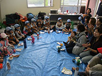 天気予報は雨、そして予報通り秋雨前線の真ん中。あらかじめスカウトハウス使用の二本立てで企画してましたが結果オーライでした。それでも午前中は何とかもったので、今日から始める一口城主募金成功を期して、建設現場見学と勉強を兼ねて城内地区へミニハイク。すると図書館横の建設現場は瓦寄付の名前記入で多くの人が訪れていました。やはりお城建設の関心が高いのですね。小雨の中帰り着くと、お昼のピザとマカロニスープが待っていてみんなお腹いっぱい食べました。その後は雨プログラムのスカウト変り絵を作りましたが、これが大受け、楽しんだ一日でした。募金も大口寄付が続々。カブとボーイに期待です。(K3)