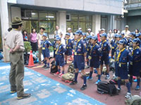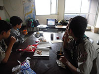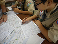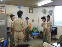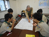 前々日までの真っ青な空は何だったのか、台風の影響で土日の秋キャンプは中止。今月は1回しか隊行事をしていないので、急遽雨プロの室内集会に切り替えました。ビーバー隊、カブ隊とも隊行事を中止しましたが、何とかできる空模様だったので、実施しました。ターゲットのガイド課目を大きな尼崎市内地図を使って、いろいろな場所へ案内できるよう勉強しました。また、来年度の石川ジャンボリーのPRを兼ねて世界ジャンボリーと大阪咲洲での日本ジャンボリーのDVDを鑑賞しました。昼過ぎに台風最接近で風雨が強くなり早めの解散となりました。一口城主募金もN副長が二口、順調です。(K3)