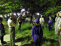 月の輪発足後初の活動で、くまキャンプの代替行事としてボーイ隊の夜間ハイクに参加。全員参加で、更にボーイ隊のスカウトとも同人数と言うことで、集合からバディを組んで心強い陣形です。くまスカウトは引っ張られるばかりでなく、時には励ましあって夜道を行く頼もしさも見えました。夜はとてもテンションが高く、やっぱり帰る頃にはドンと疲れていましたが、ボーイ隊の雰囲気を感じることができてとても有意義な活動になりました。(M34)