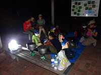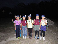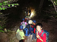 久々のプログラム復活です。しかも今回は月の輪組も参加して北山・甲山コースで実施しました。とっても元気なカブ5人とボーイの精鋭5人、それにリーダー5人の計15人が午後8時、JR尼崎駅に集合。さくら夙川駅から阪急夙川駅横の遊歩道まで移動し、いよいよ夜間ハイクの開始です。ほとんどのスカウトが初体験とあってテンションは高く、険しい怖い道も何のその、無事北山ダムの仮眠地に到着し夜食後ビバーグをすることになりましたが、起床は4時30分ということで一睡もしなかったスカウト・リーダーもいたようです。そして暗闇の中、甲山登山、山頂で朝礼を行い神呪寺展望台で朝日の出を観察、森林公園でおかゆと梅干し、みそ汁の朝食をいただき、午前11時無事尼崎駅で解散しました。楽しい、しっかりした月の輪とまた合同プログラムができたらなと思います。(K3)