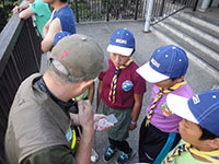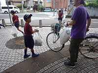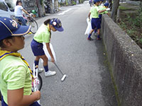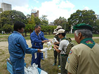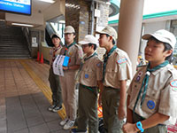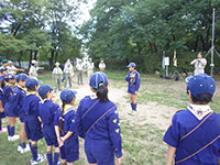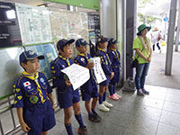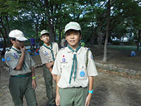 台風で前日の都市交歓事前集会は中止になりましたが、スカウトデーは台風一過で良い天気。例年と同じくカン拾いから始めました。時間いっぱい、小さなごみから大きなごみまでたくさん集めました。午後は九州豪雨の募金活動でJR尼崎まで移動。午前、午後ともに『善行』を行うことができましたね。疲れていただろうに、最後まで大きな声が出ていてよかったです。(M34)