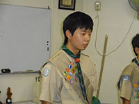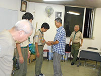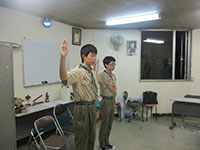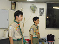 菊スカウト、二級スカウトの団面接が行われました。菊章は上級班長のA君、二級は佃組の数少ない生き残り、KE君です。K君は同期が6月に一足早く進級面接を受けましたが、クラブ活動の関係で今日になりました。両立が難しい中、やる気十分に団委員の励ましに対応していました。菊面接のA君はボーイ隊のトップスカウトとしてみんなを引っ張っていってます。9月2日に地区面接を受け菊スカウト誕生となります。(K3)