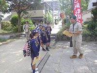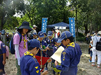 少し涼しく、天気も良い最高の気候での地区推進大会。7団担当のため、午前は大物公園周辺で歴史探訪ハイクです。よく知っている地域だけあって、進み具合も快調。午後は、地区での精励章表彰式で、2名がカブ隊から表彰されました。集会後、月の輪も発足させ男子班『ホワイトタイガー班』女子班『ネコ班』が誕生しました。さっそく来週、BS隊合同で夜間ハイクに行きます。(M34)