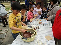 春のようなポカポカ陽気、久しぶりの大物公園での隊集会です。今日は、少々季節外れですが前々回の17団訪問時の未完成の凧を作ることをテーマにしました。それとおいしい野外料理とおやつ。15名のスカウト、ギャング2名、保護者リーダー16名で午前中凧作り、稲川公園へ移動しての凧揚げ、昼食はホットドッグと野菜たっぷりのミネストローネ。そしておやつは一年ぶりのチョコフォンデュ(バナナ、クラッカー、マショマロ)口のまわりをチョコだらけにして満足感のあふれる隊集会でした。(K3)