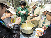 3年間統合活動を続けた3×7=21世紀スカウティングも今日でお別れです。大物での最終集会ということで、7団7名、3団3名のスカウトが集まり訓練を行いました。初級は先日の進級ハイク下見に基づきハイク計画書の書き方の指導を受け、いよいよ2級シングルハイクの準備です。午前中だけで終わる予定だったのですが、お別れということで急遽あったかうどんの昼食を追加、みんなで舌鼓を打ちました。(K3)