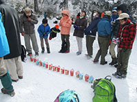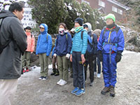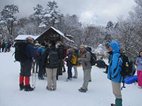 ボーイ隊、月の輪組合同金剛山登山がボーイ8名、カブ3名、リーダー8名、孫1名の計20名の参加で今年も実行されました。昨年の積雪0cm、快晴、無風と違って、登山口からアイゼン着用の本格的冬季ハイクになり、連休で大混雑の登山道を登りました。12時半、予定より少し遅れて到着し、用意のカップラーメンで昼食をとり、記念撮影後帰路コースを辿りました。なお頂上の様子はライブ動画でウォッチできました。(K3)