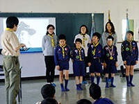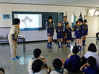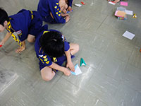 今日は朝からとてもいい天気。午前中は、紙飛行機大会で大空に飛行機を飛ばし大盛り上がり。その後はお別れ組集会の内容や、お別れ飯盒炊爨に向かってメニューを決めたり、いよいよ今年の活動のラストに向けて動き始めました。午後は、B-P祭の式典でボーイスカウトの歴史、7団の歴史を振り返り。ビーバースカウトパパが作ってくれた記念ムービーで、65周年の一端を感じられました。少し人数は少なめでしたが、最後までとてもいい雰囲気で、カブのスタンツもよくできていました。がんばったね。(M34)