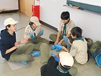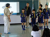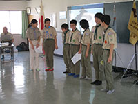 B-P祭のボーイ隊演目は「B-Pの一生」のスタンツでした。午前中、大物公園で練習し、午後からの本番に備えました。そして、式典の中で誕生から死に至るまでを非常に簡明に表現された説明と演技で、みんなの拍手喝采を浴びました。(K3)