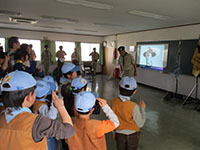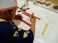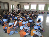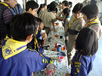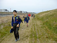 突き抜けるよう青い空、久々の日本晴れです。午前中は隊活動、午後からB-P祭ということで杭瀬団地会館に集合しました。ビーバー隊はプチハイクで常光寺から大物に至る旧河川跡をたどっての追跡ハイクを行いました。3組に分かれて、サインの矢印を捜しながら稲川公園に。そして旧大門川跡をたどり出発地に全員帰ってきました。午後からのB-P祭はボーイスカウト運動の始まりや、7団の歴史をスタンツやソングでたどりながら生誕を祝いました。フィナーレは7団65周年を祝っての乾杯とお菓子パーティー。そしてサプライズの7団構成員ほぼ全員を網羅した映像入り団歌のDVD映写。だんだん人数が減っていきますが充実したB-P祭でした。(K3)