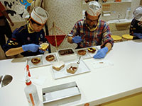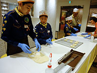 1年前の予約から待ちに待っていた、ダスキンミュージアムでのドーナツ体験ハイク! 朝の部の体験だったため、電車で急ぎ足で施設に到着。生地をくりぬいて作るドーナツ3つと、トッピングをほどこすオールドファッションを2つ作りました。箱も自分でデザインできて、おみやげもあり、揚げたても食べられて大満足。帰りは電車を使わず歩いて、カロリー消費しました。お掃除体験も併せて行ったので、家でのお手伝いもバッチリ?!(M34)