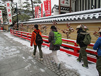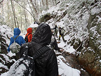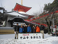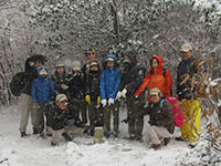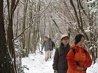 セブンサミット第6弾は近場の中山最高峰。先週の雨で延期したところが天気予報通り今季一番の寒波で雪。電車で川西池田に着くころには市街地も真っ白。予定を変更して、中山寺から登ることにしましたが、一面の銀世界。しかも登るにつれて粉雪が舞い散り、昨年の金剛山登山の真逆の銀世界でした。山頂での昼食もそこそこに下山を開始しましたが、足洗川沿いの下山ルートはまさにアイゼンが必要な位つるつるでしたが、ボーイはへっちゃらで、すいすい降りて行きました。来月の耐寒金剛山登山は今回に切り替え、不参加の前隊長に月の輪を引率してもらいたいと参加リーダー全員一致の意見でした。(K3)