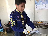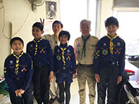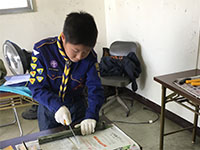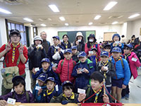 今冬一番の寒波の中、3度目の月の輪集会。モットーやスローガンの復習、竹の一輪挿し作りなど、午前中だけでしたが様々な内容を進めていきました。最後には団委員長にお越しいただき、スカウツオンサービスも体験しました。みんなで上進してほしいです。(M34)