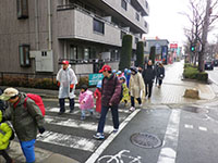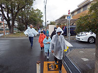 カブ隊は、ボーイ隊と同じ20キロコース。アップダウンもあり、雨も降り、寒いしで、なかなかハードな道のりでしたが、みんなあまりへばることなく最後まで歩くことができていました。よく頑張ったね。隊長からは、完歩の証としてスニーカーキーホルダーを全員にプレゼントしました。(M34)
