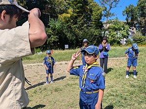 秋晴れの中、第73回尼崎地区活動推進大会が潮小学校で開催されました。ビーバー隊は3人のビッグビーバーが地区精励章を授与しました。午後からは潮江公園に移動し、昼食後「仲間つくり」をテーマに26団地域の4つのポイントを回り、8つのいろいろなゲームに挑戦しシールをゲットしました。潮江公園に帰着後そのシールでビンゴゲーム、みんなプレゼントをもらいました。ことちゃん以外は参加全員男、ボーイスカウトデーでした。(K3)