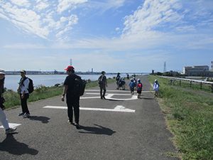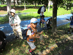 大物公園から歩いて西淀川区大野川緑陰道路を経て、淀川河口矢倉緑地までのどんぐり採取ハイク。シラカシ、アラカシは大物公園にもあるのですが、食べられるスダジイ、マテバシイは大野川緑陰道路が宝庫なのです。途中佃東公園では食べれないクヌギを採取し、緑陰道路へ急ぎます。ここで5種類のどんぐり特徴を勉強し、たっぷり食用マテバシイを拾いました。また、ここに3本しかないスダジイも見つけ青い実を採取。そして淀川右岸をまっすぐ矢倉緑地、暑い中を歩きました。到着後、暖かい豚汁とデザートの焼きマシマロを食べ、帰路につきますが、前回のトンネルハイクと違い暑い熱い。たっぷり汗をかき大物駅では今季3回目のご褒美アイス、おいしかったね。次回は拾ったどんぐりで秋味隊集会。(K3)