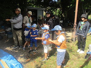 ③動の隊集会は、恒例のドッチビー。これまたTスカウトの活躍で1組の勝利。組の仲間を入れ替えてもTスカウトのいる組が勝利。次回は2組さん頑張ろうね!(yukko)