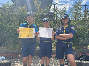 ②静と動の隊集会は、紙飛行機作って飛行距離を競いました。3回飛ばして1位から3位まで点数合計してカブラリーに引き続き1点差で1組さんの勝利。個人でも1組Tスカウトが1番に。先週からすごいね。
