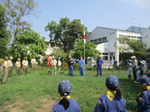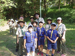 今年のくまキャンプはボーイ隊キャンプの2日目から1泊相乗りする形で実施しました。1名欠席のため男子3人のみで信太山まで。到着まで何とか天気も持ち、暑い夏の陽気の中での2日間となりました。設営、炊飯、キャンプファイヤー、野外での宿泊は初めてのスカウトがほとんどでしたが楽しい2日間になったようです。昨年・一昨年にボーイ隊に上進した元カブスカウトの立派な姿も見ることができました。(M34)