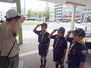 例年よりも早く団スカウトデー清掃奉仕が実施されました。9月に入っても少しも涼しくならず35度越え。尼崎市環境局の支援もいただいてBV隊は国道2号線沿いを徹底収拾。相変わらず植え込みの中にポイ捨てが多い。それとたばこの吸い殻、だれも拾わないのかかなり多い。各隊無事収拾を終え、環境局トラックに引き取ってもらい終了。BV隊は少人数で工作。れいパパとK副長に手伝ってもらい簡易雨除けテント制作。無事完成。唯一のギャングが本日仮入隊で、BVノートと制服を渡す。(K3)