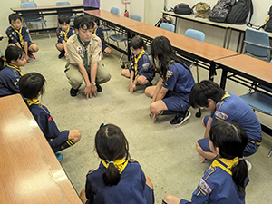 雨の予報ですが、来週本番のカブラリーのため”雨天決行”です。幸いにも、カブラリー本番と同じ園田西生涯学習プラザの会場を確保しているので、カブラリーの準備をしっかり行うことができました。本番用の手裏剣も折り、準備万端! 目指すは優勝ですね!(M34)