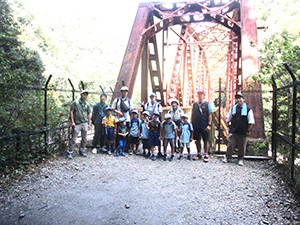22日の雨で一日延期して隊ハイクを実行。久々の廃線ハイクです。今シーズン一番のカラッとした秋を感じるような気候でした。JR生瀬駅からのアプローチがより安全になり歩道が整備されました。又トイレもあり今までとは大違いです。廃線跡は変わりなく、トンネルは暗く、武庫川中流の岩壁は絶景を見せてくれます。モミジにはまだ早かったですが、難なくトンネルを抜け親水広場で昼食。少し楽すぎたので昼食後桜の園までの登山ハイクが応えました。そして、お決まりの足湯まで足を延ばし、予定より早く帰ってきました。雨プロやめての野外活動、やっぱり一番です。(K3)