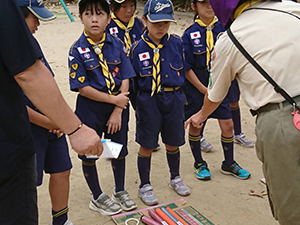 晴れでもなく、雨でもなく集会のしやすい気候の中カブラリーです。尼っ子忍者となって、各コーナーのゲームに挑戦します。事前の集会の成果を発揮しつつ、なじみのない地域でもあることから遠いコーナーは回れない組もあったようです。午後は手裏剣大会、なんと7団スカウトが尼崎のカブスカウトの中で1番の飛距離で表彰されました。10m以上の飛距離です。すごい! 本当におしくも、3位までの入賞はなりませんでしたが、一つ、トロフィーを持って帰れた7団でした。(M34)