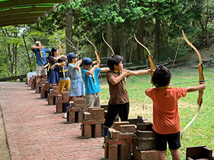 カブ隊の夏舎営は今年も20団と合同実施。 猛暑の中、集合です。電車・バス・ケーブルカー・ロープウェイと4つの交通機関を乗り着いて掬星台にて昼ご飯。その後徒歩で施設へ向かいます。両団とも、過去に使用経験がありますが、改装により大きく変わっています。入室後、1日目はアーチェリー体験。夜は室内でゲーム大会をして過ごしました。片方の組は1日目ということでなかなか寝付いていませんでしたが、もう片方は早々に就寝していました。(M34)