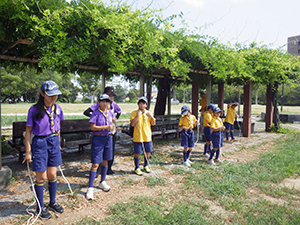 まだまだ夏の陽気の中、団行事のスカウトデー。みんなで地域のごみを集めます。毎年こんなに集めているのに、凄い量のごみですね。今回も市職員の方に来ていただき、あつめたごみはすべて運搬していただきました。ありがとうございます。午後は、29日のカブラリーに向けて『忍術修行』の訓練。折り紙での手裏剣づくり、みんな隊長より上手でさすがです。投てき距離も、なかなかのもの。今年は優勝できるかな!?