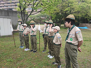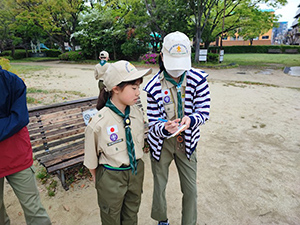 GW行事第2弾、7アワーTが総勢34名支援2名の参加で実施されました。大物公園から大物駅まで全員で移動、ビーバーは出発地の御影、それ以外は三宮まで電車で向かいます。9時過ぎいよいよゴールめざして出発、国道2号線をひたすら歩きます。途中灘区・東灘区の神社はコロナ以来のだんじりや神輿でにぎわい、高校の文化祭やらで多数の人波で、つくづく健康安全の大切さを再認識しました。そんな中、あまななスカウトは淡々と歩きとおし、芦屋川、夙川、武庫川を過ぎ、藻川からのラストウォークも元気にこなし、15:30無事ゴールしました。それから、三宮出発チームも暫時帰着し、16:40最終チームの到着でフィナーレを告げました。(K3)
