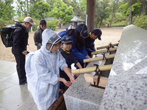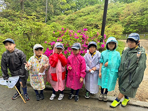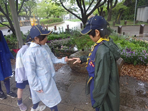 昨年度も一緒に活動した20団と、今年もご一緒します。まずは顔合わせとして、西宮市の廣田神社へのハイキング。朝から雨模様ですが、とりあえず合流して自己紹介。合体するとひと組6〜7人で賑やかです。廣田神社では年度初めの参拝をし、ツツジのそばで写真を撮影しました。雨が降り続けるため、神社から離れて屋根のある公園まで移動後、ジャンケンゲームをしてから帰着。初回から仲の良い声が聞こえており、何より今年はうさぎさんが元気です。今年1年も楽しみです!(M34)