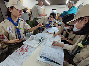 今年度初の隊集会がありました。まずは基本動作の確認をしました。その後歩測をして自分の復歩がどれぐらいか測りました。昼休憩を挟んでからは次のハイキングに向けて16方位の確認とコンパスの使い方をし、雨が強くなってきたので屋内に移動し地図の座標読みをしました。初回からカブ隊上がりの子には少し多めな内容だったかもしれませんがみんな楽しくやってそうで良かったです!(せいちゃん)