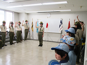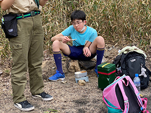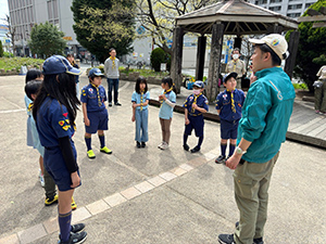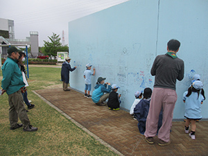 新隊長デビュー戦はあいにくの雨模様。天気予報は活動中止レベルの終日雨。でも雨でもやめないあまななビーバーは予定通り伊丹豊中ハイクへ。JR猪名寺駅から農業公園経由で伊丹豊中クリーンセンターまで、春雨の中歩きました。現地に到着すると、奇跡的に雨は上がり、貸し切り状態の中でボルダリングに挑戦。みんなそこそこ上手にクリアしました。そして、次は落書きに挑戦、それぞれが2024年あまななビーバーをテーマに思い切り落書きを楽しみました。昼食後、第3日曜だけオープンの伊丹豊中クリ−ンセンター見学を行い、9Fからの伊丹空港の景色や、ごみ焼却場の仕組みを学びました。帰途も雨足は強くなりましたが、田能遺跡で勉強し、賢くなって早めにJR尼崎駅に帰着解散しました。(K3)