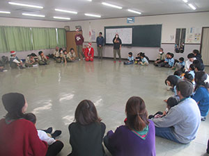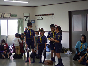 ハンドインハンド、ユニセフ募金の後、場所を移し杭瀬団地会館で久々の団クリスマス会を実施しました。各隊の出し物や楽しいゲームソングでひと時を過ごし、おやつはたい焼きから代わって尼崎名菓S谷のシュークリーム、大ぶりの中にたっぷりのシュー、加えてBV隊のUママのチーズケーキでまさにクリスマス気分いっぱい。キャンディ交換もそれぞれバラエティにとんだもので袋がいっぱい、N田DCの別キャンディや、団キャンディもあり、一足早いサンタさんプレゼントにみんなニコニコ。2023年最後の行事を笑顔で締めくくりました。(K3)