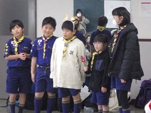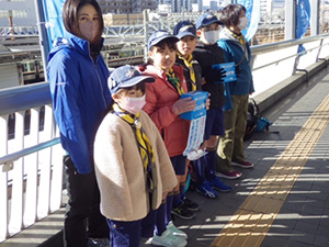 今シーズン一級の寒さ、昨日までの暖かさは夢かと思うばかりの気温差、よりによってこんな日に戸外で募金活動、なんて誰も思いません。世界中の困っている子供たちに支援を届けるため、みんな一生懸命募金活動を行いました。ビーバー隊は阪神杭瀬駅と杭瀬商店街の2か所に別れ、大きな声で募金協力を呼びかけ、たくさんの協力を得ました。わざわざ車を停めて募金してくれて人、いったん通りすぎて引き返してくれた人、昔のビーバーも来てくれました。三つの募金箱にそれぞれ1000円札を入れてくれた人もいました。商店街は日曜も休みで人通りは少なかったけれど、たくさんの人の協力を得ました。ビーバーは良いことをしたのです。(K3)