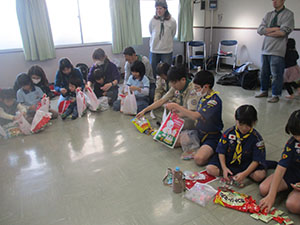 先の投稿でもお知らせしたとおり、1日団での活動。カブ年代以上のスカウトはJR尼崎での街頭募金を行いました。スカウト・リーダーOBも通りかかるなど、多くの方に募金いただき、ビーバーも合わせると90,164円もの募金が集まりました。ご協力いただいた方々、ありがとうございました。午後のクリスマス会では、ビーバー隊のソングに始まり、カブ隊は組ごとに考えたクリスマスソング、ボーイ隊はビスタ、ベンチャー・ローバーは進行・ゲームで場を盛り上げ、スカウト大活躍で楽しい時間を過ごしました。(M34)