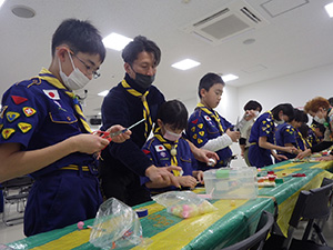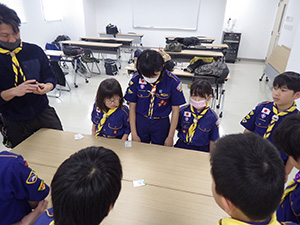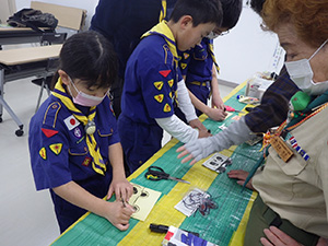 新年の初めは、手作り遊びや昔遊びで楽しみます。団委員の協力もいただき、2つの手作りおもちゃを作りました。その後、羽子板作りとかるたを楽しみ、午後は外で羽根つきと長縄跳び。ひたすら遊んだ1日でした。(M34)
