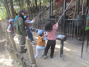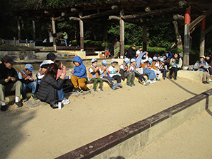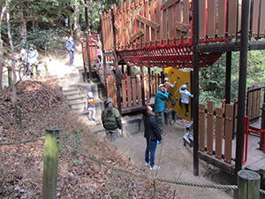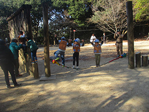 新年の幕開け、須磨離宮公園への新春ハイク。ビーバー・リーダー全員元気に参加で総勢30人。寒波襲来かと思いきや、快晴でお日様が暖かく感じられました。公園に到着するやすぐにフィールドアスレチックに挑戦。みんな1時間くらいで難なくクリアしました。昼食後、いよいよロングスライダー挑戦。毎年様々なストーリーが展開されますが、初心者も含めてみんな手慣れたもの。スリルとスピードとおしりの痛さを味わいました。それから、須磨寺に参拝、能登地震の犠牲者のご冥福と復興を祈願して鐘をみんなで撞きました。帰途は須磨海岸で遠くに停泊中の海王丸(A.S君乗船)を望見しながら、おやつのドーナッツを味わいました。(K3)