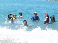 8月24日から三日間、和歌山県由良町にてカブ隊舎営が行われました。施設は小高い山の上にありますが、海も近く、とにかく自然いっぱいの場所です。そんな自然の中で最初のプログラムは昆虫植物採集。甲山でやった時よりも種類も大きさも全く違う虫や植物で、みんな一生懸命見つけます。夜は天体観測で、尼崎では絶対見えないほどキレイな星空に、みんな感動しきりでした。施設の方によるとこれでも50%ぐらいの見え方だよということでしたが、流れ星も見え、満足でした。2日目はみんな待ちに待った海水浴。海までの道は山を下らなければなりませんが、海に入れる楽しみからか足取りは軽やかです。その日の海は引き波が強く、リーダーたちは監視の目を光らせドキドキしていましたが、子供たちは少しスリルがあって楽しかったようです。スイカ割りや、ゲームを楽しんだ後、下りてきた道を戻りましたが、さすがに泳いだ後はみんな疲れが見え、くたくたになりながら施設に戻りました。さらに昼寝を挟んだ後、山を歩き回るフィールドサーチで、少しばててしまった子もいるようでした…。それでも、その夜のブートン王国で行われた?キャンプファイヤーは、両組とも時間をかけて準備してきただけあって、おもしろいスタンツでみんなを楽しませてくれました。一日中頑張った皆、さすがにその夜は熟睡でした。最後の3日目は石窯でのピザ&ストーンペインティングのプログラム。段ボールオーブンの時と味も焼き上がりも少しづつ違い、おもしろかったのでは? ストーンペインティングも、みんな違ってセンスある作品がたくさんできていました。三日間一緒に過ごしたスカウトたち、自分で気がつかないところでみんな少しづつ成長したと思います。リーダーもみんなの成長が見て取れて、面白い三日間でした。キャンプに協力していただいた皆さん、ありがとうございました。(M34)