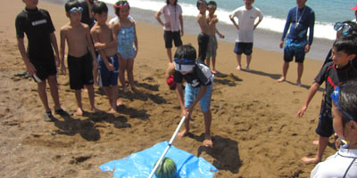 暑い暑いビーバー明石舎営「たことほし、ワイルドだろー」が無事終了しました。江井ヶ島ではたこのはっちゃんの出迎えを受け、明石市立青少年自然の家までしっかり歩きました。同じ日に宿泊するのが、ガールスカウト兵庫17団、神戸17団カブ隊、そして尼崎7団ビーバー隊と七並びでセンターの職員もびっくりでした。午後からは早速海岸遊びのプログラムから、今回はたらい船が新たに加わりみんな不安定な体験を楽しみました。翌日の土鈴作り、明石天文科学館のプラネタリウムの見学と睡眠、たっぷり楽しんだ二日間でした。あっそうそう、天文科学館のプラネタリウムの機械が長寿日本一で、同級生のK団委員が入場料半額、記念品をもらいました。(K3)