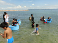 尼崎の方は雨、雷と大変でしたが、舎営地の白崎では良いお天気に恵まれ、プログラムも順調に進んでいったようです。海でのプログラムもビーチを貸し切りの状態のようですね。