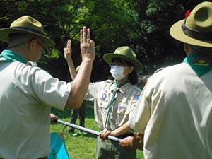 新入隊員(カムバック)のちかいの式、キャンプに向けての訓練、初級面接と、盛りだくさんの隊集会でした。(M34)