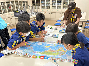 夏の舎営まであと2週間。舎営本番の荷物をもって集合です。持ち物チェックで当日もきっとバッチリですね! カブブックの『世界の国々』『日本の国旗』『計測』も終えて、カブブック修了目前のスカウトも多くなってきたかな?!(M34)