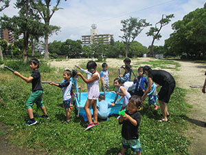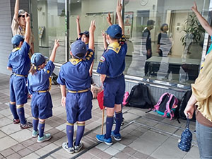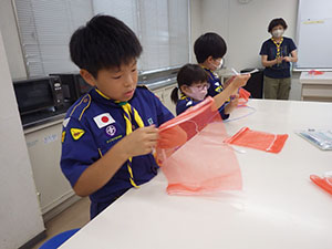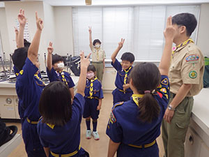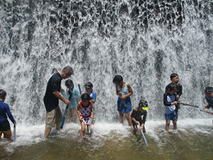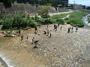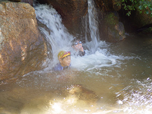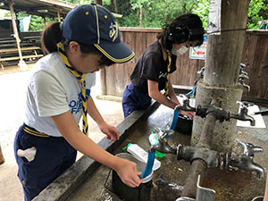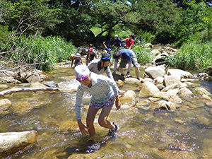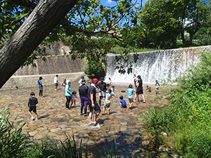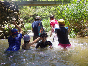 3連休の真ん中ですが、毎年恒例の川遊びとあってか、7団スカウトは全員出席。20団と一緒に仁川渓谷へ水遊びです。先週作った網と水槽も一緒に持って行きます。電車とバス・徒歩で仁川渓谷に到着後、さっそく生き物探し。沢の様子を隊長が確認したら、組ごとに川のぼりに挑戦しました。昨年よりは水量が少なく登りやすかったかな? 初めてのスカウトもたくさんいましたが、沢登り楽しんでいたようです。生き物探しは、たくさんの種類を集めていた2組が優秀組になりました。帰りは、きれいな川で遊ばせてもらった感謝も込めて、きれいにごみを拾って帰りました。とっても暑かったですが、雨にも降られず、めいっぱい楽しめたね。来年もいけますように! (M34)